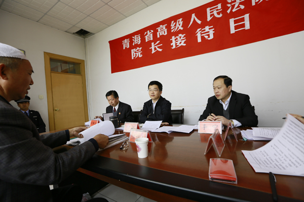 3月27日,青海省高级人民法院党组书记、院长董开军,党组副书记、常务副院长李宁接待来访群众,用通俗易懂的语言,由浅入深释明法律规定,耐心为来访群众答疑解惑。(作者:袁有玮 通讯员:李卫 )