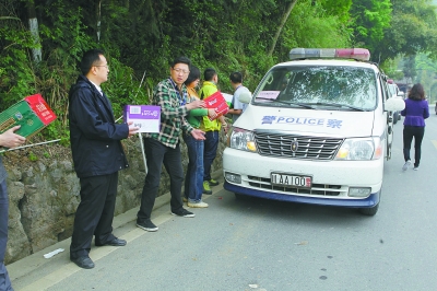 行到途中,汽车刚爬过一个陡坡,前面满载帐篷和矿泉水的大车就抛锚了,无法挂挡,后面的干警迅速躲过溜下坡的救援卡车,冲到路边的碎石地上抓起几块砖头回来挡在汽车的后轮胎下。大家排着队,将大车里的帐篷、电缆、被褥、食品等救灾物资转移到其他车里,等到了灵关再回来搬运剩下的矿泉水和方便面。