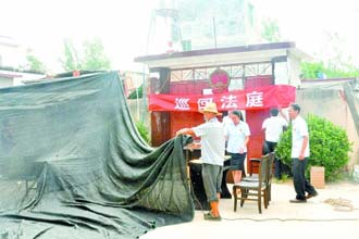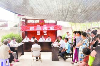 8月29日,河南省唐河县人民法院法官深入该县文峰街道办事处徐庄社区居委会三里王村,对该村一起返还原物纠纷案巡回审判,将庭审现场设在村口空地,向群众全程“直播”审理过程。