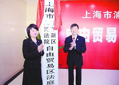 11月5日,上海举行浦东新区人民法院自由贸易区法庭挂牌成立仪式。上海市高级人民法院党组书记、代院长崔亚东,浦东新区区委副书记胡佩艳为自贸区法庭揭牌。
