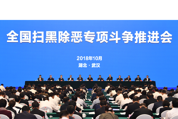 10月17日,中共中央政治局委员、中央政法委书记、全国扫黑除恶专项斗争领导小组组长郭声琨出席全国扫黑除恶专项斗争推进会并讲话。 摄影 郝帆