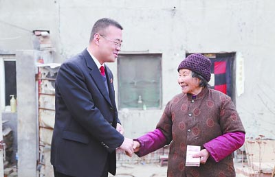图为1月30日,鹤壁中院法官给困难群众送去1万元司法救助金。李瑜 摄