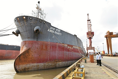 图为2016年,上海海事法院依法扣押“AMBA BHAKTI”轮。倪中月 摄
