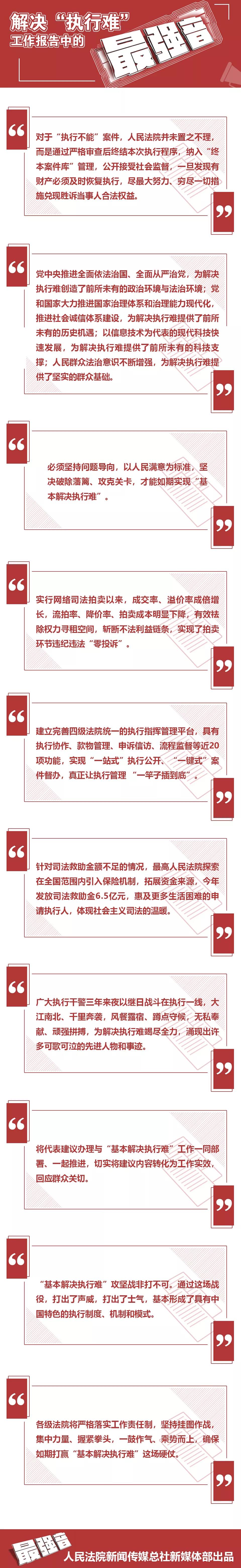 在今天上午召开的十三届全国人大常委会第六次会议上,最高人民法院院长周强代表最高人民法院报告2016年以来人民法院解决执行难工作情况,交出了答卷,发出了破解执行难题的“最强音”。