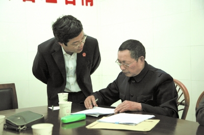 采访时,恰好遇到诸暨市公安局枫桥镇派出所人民调解员杨光照,他是来向寿文光请教法律问题的。