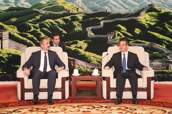 周强会见土耳其司法部部长阿卜杜勒-哈米特•居尔。孙若丰摄