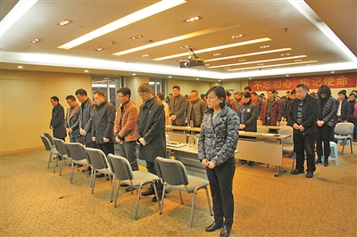 图为九龙坡区法院干警哀悼黄学忠。赵新梅 摄