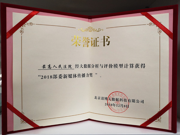 12月8日上午,以“新能·智融·共进”为主题的清博盛典暨新媒体大数据AI峰会在北京举行。经大数据分析与评价模型计算,最高人民法院官方新媒体获得“2018年度部委新媒体传播力奖”,中国法院网获评“2018年度影响力政务快手号”。