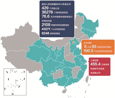 截至2014年底,最高人民法院审判流程信息公开平台共公布开庭公告429个,审判信息项目36276个