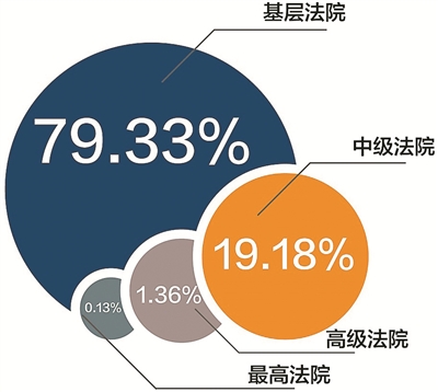 中国裁判文书网上网文书法院层级分布图 (截至2014年12月31日)