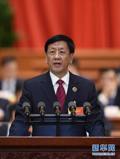 3月12日,十二届全国人大三次会议在北京人民大会堂举行第三次全体会议。最高人民法院院长周强作最高人民法院工作报告。 新华社记者 谢环驰摄