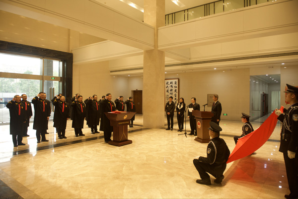 1月12日,最高人民法院第五巡回法庭举行宪法宣誓活动,最高人民法院党组成员、副院长、第五巡回法庭庭长李少平监誓并讲话,第五巡回法庭负责同志及全体新任主审法官宣誓。