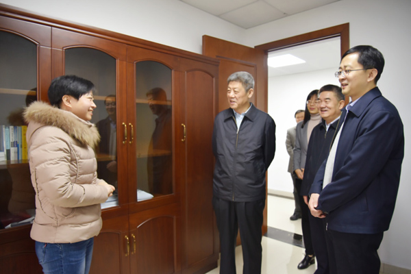 图为 李少平副院长看望坚守岗位的法官助理和书记员
