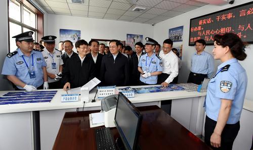 5月13日至15日,中共中央政治局委员、中央政法委书记孟建柱先后到大同、忻州、太原等地就经济发展新常态下政法综治工作进行调研。图为孟建柱在忻州市公安局调研。郝 帆 摄