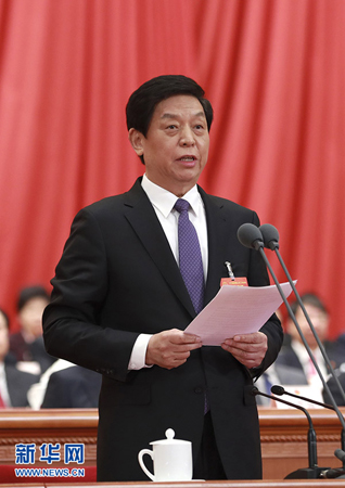 随后,栗战书发表讲话。他说,第十三届全国人民代表大会第二次会议已经圆满完成各项议程。会议认为,过去的一年,以习近平同志为核心的党中央团结带领全国各族人民砥砺奋进、攻坚克难,各方面工作取得新成就,会议对此高度评价。