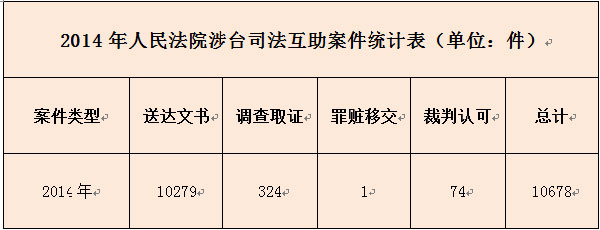 2014年人民法院涉台司法互助案件情况