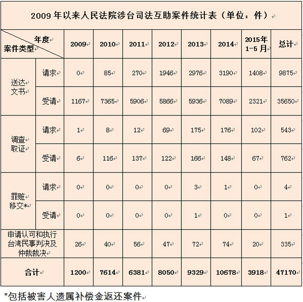 2009年以来人民法院涉台司法互助案件统计表