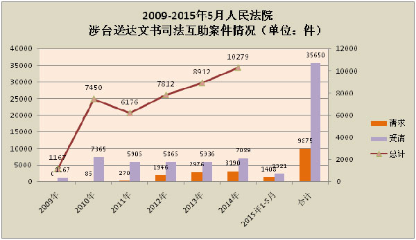 2009-2015年5月人民法院涉台送达文书司法互助案件情况