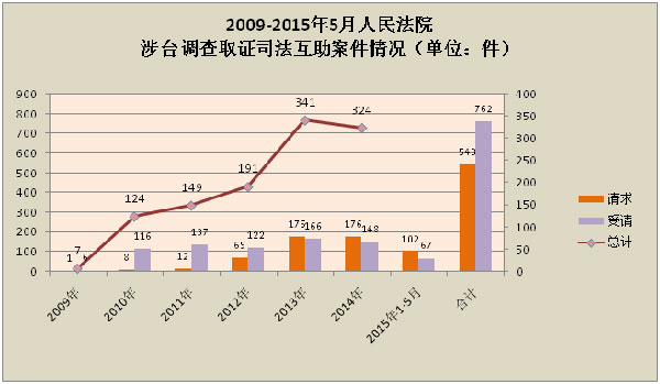 2009-2015年5月人民法院涉台调查取证司法互助案件情况