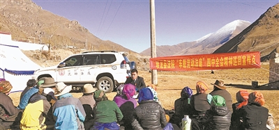 西藏自治区高级人民法院积极组织基层法院“车载流动法庭”开展党的十八届四中全会精神巡回宣传活动。图为堆龙德庆县人民法院“车载流动法庭”巡回宣传点。资料图