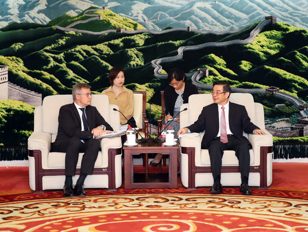 图为周强会见卢森堡副首相兼司法大臣布拉兹。孙若丰 摄