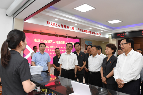 江西省委常委、政法委书记尹建业,省委常委、南昌市委书记殷美根,江西高院院长葛晓燕等参加调研。(孙航)