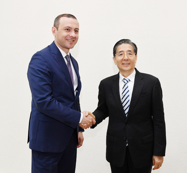 与亚美尼亚安全会议秘书格里高良会谈时,郭声琨说,中亚两国是传统友好合作伙伴,中方高度重视中亚关系,愿同亚方一道,以落实两国领导人共识为契机,将两国关系提高到新水平。安全合作是双边关系的重要组成部分,愿双方在反恐、网络安全、“一带一路”安保等领域不断取得新的合作成果,充实中亚传统友好合作的内涵。