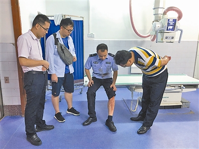 图为桂平法院院长到医院看望受伤的李燕强。胡文华 摄