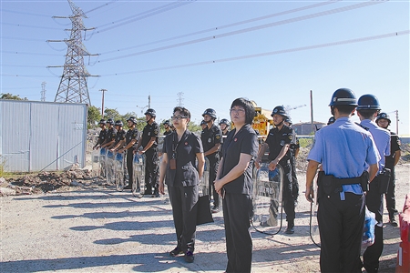 图为苏州工业园区法院联动10个部门出动200名人员对污水处理厂纠纷案进行强制清场。赵淑文 摄
