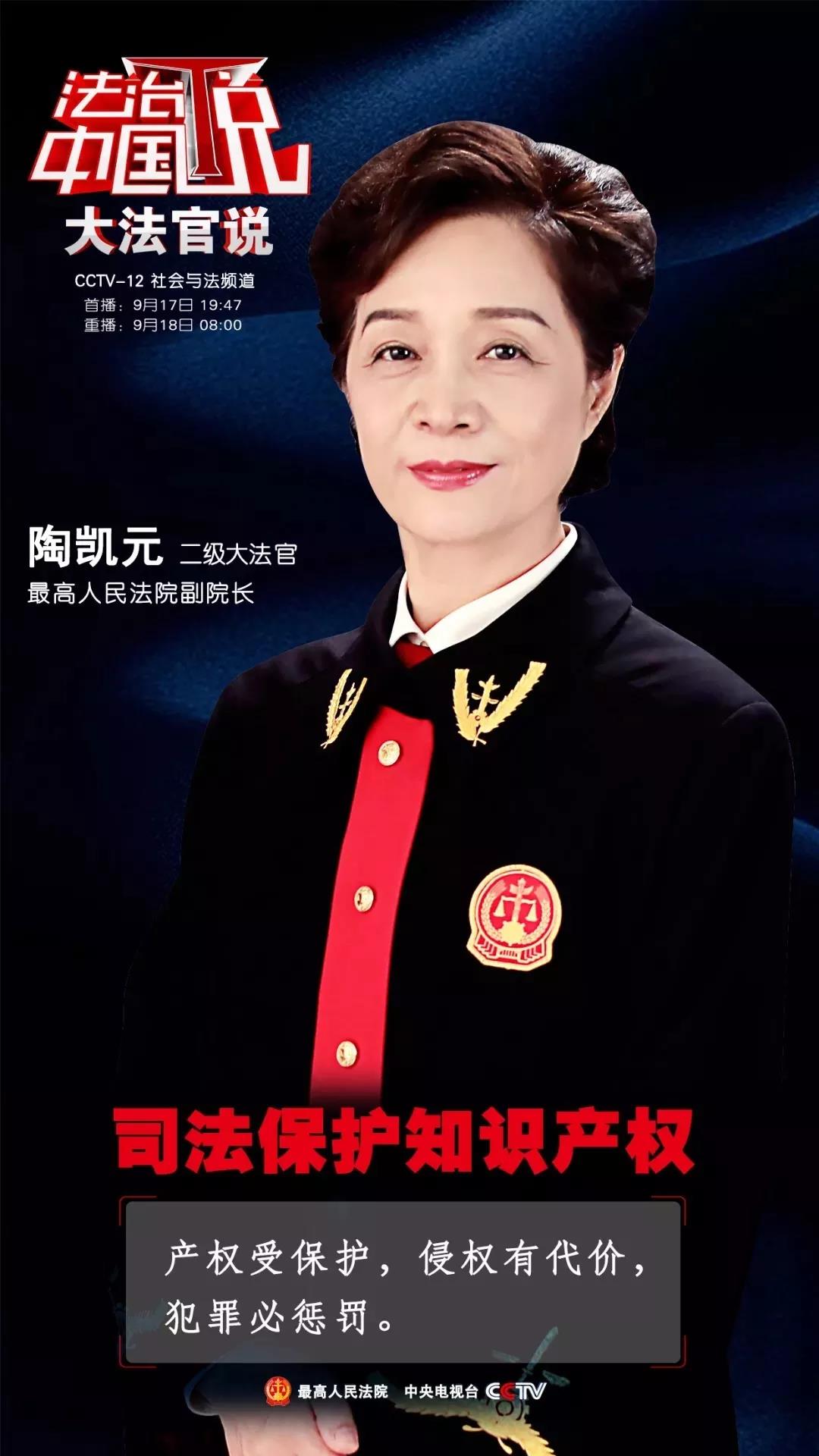 《法治中国说》第三季“大法官说”第二集《司法保护知识产权》将于2019年9月17日19:47在央视社会与法频道首播。