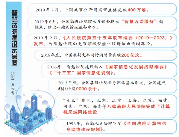 “构建中国特色社会主义现代化智慧法院应用体系”——2019年2月,《人民法院第五个五年改革纲要(2019—2023)》发布,为智慧法院向更深领域智能化迈进给出清晰路径。