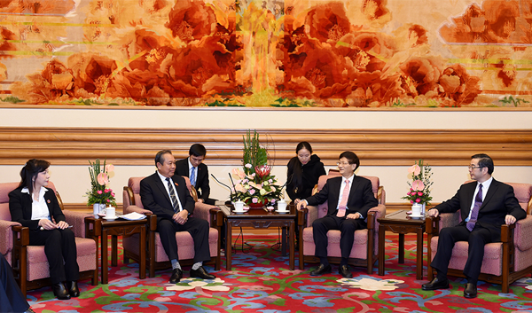中共中央政治局委员、中央政法委书记孟建柱3月24日在中南海会见越共中央政治局委员、最高人民法院院长张和平。
