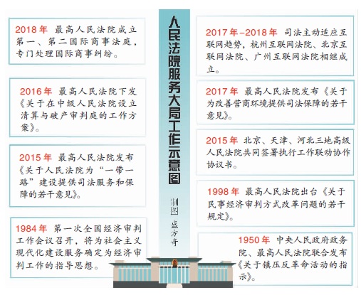 不谋全局者,不足谋一域。70年里,作为中国特色社会主义事业的建设者与捍卫者,人民法院始终牢记使命,紧紧围绕党和国家工作大局履职尽责,积极作为,为促进国家和社会的稳定、发展与开放保驾护航,为实现中华民族伟大复兴的中国梦添砖加瓦。