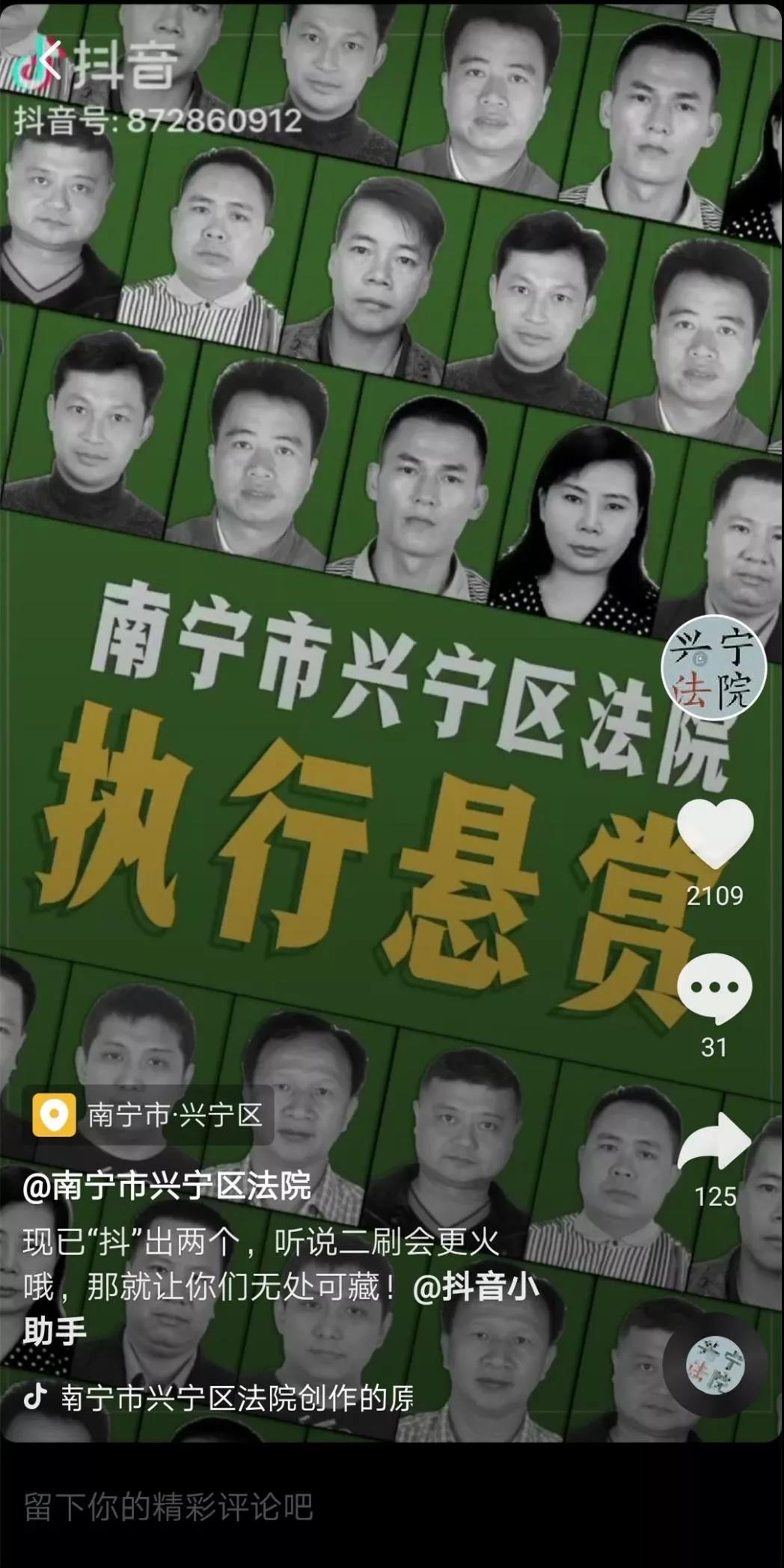 广西壮族自治区南宁市兴宁区人民法院率先尝试在抖音上发布执行悬赏公告