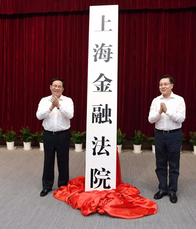 上海市委书记李强和全国人大常委会副委员长王东明为上海金融法院成立揭牌。陈正宝 摄