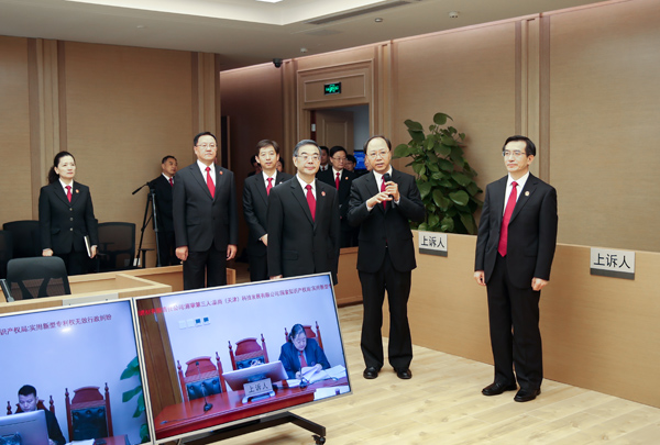 周强要求,要充分发挥审判职能作用,贯彻落实新发展理念,为创新驱动发展提供有力司法服务和保障。要把建设“统一裁判标准、提高审判质效系统工程”作为重要任务,完善工作机制,总结更多可推广可复制经验。要坚持实施精品案件战略,充分激发法官聪明才智和创业干劲,努力作出一批有重大影响的标杆性判决。要始终坚持司法为民,积极探索诉讼机制改革,推动多元化纠纷解决机制发展,探索在线调解、在线庭审,完善巡回审判机制,满足人民群众多元司法需求。要完善多元化技术事实查明机制,探索建立多元化技术事实查明人才队伍和事实查明协同机制,切实解决知识产权诉讼中的难点问题。要着力加强信息化建设,推进大数据、云计算、人工智能、区块链等信息技术在审判中的深度应用,不断提升审判智能化水平。要积极推进司法合作交流,不断提升中国法院在知识产权保护领域的公信力、影响力。