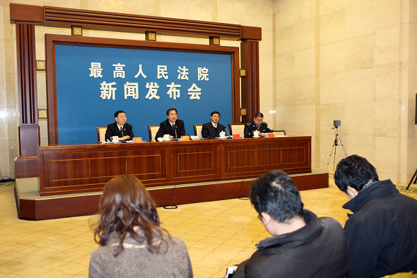 发布会主席台 最高人民法院办公厅主任、新闻发言人王少南主持发布会 最高人民法院刑二庭庭长裴显鼎回答记者问 与会记者认真听取发布内容 公安部经侦局副局长刘冬回答记者提问 中国审判记者提问 处置非法集资部际联席会议办公室主任刘张君会后接受记者采访 最高人民法院刑二庭庭长裴显鼎会后接受中央电视台记者采访