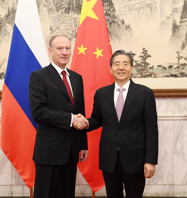 中共中央政治局委员、中央政法委书记郭声琨2日在京会见俄罗斯联邦安全会议秘书帕特鲁舍夫,并共同主持中俄执法安全合作机制第六次会议。