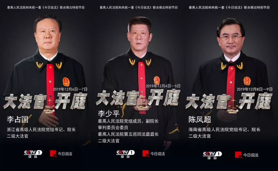 2019年12月4日和5日,播出《大法官开庭》之《重生》(上下集)。这两期节目中审案的大法官是最高人民法院党组成员、副院长、审判委员会委员,最高人民法院第五巡回法庭庭长,二级大法官李少平。