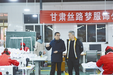甘肃高院驻村干部到贫困村扶贫车间服装加工厂调研。 资料图片