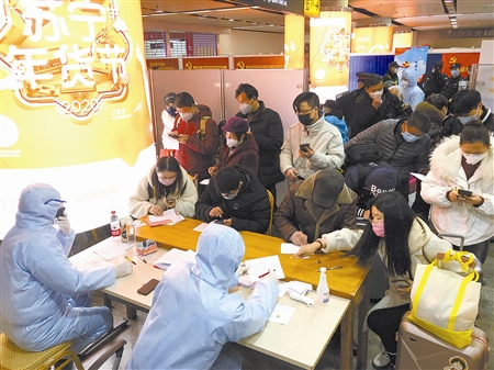 图为无锡中院干警为出站旅客做登记。 诸佳英 摄