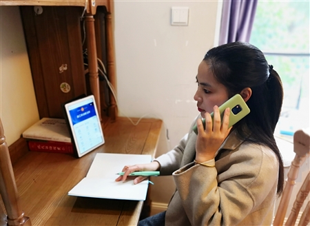 2月6日,杨雪娟通过电话与一起民间借贷纠纷当事人沟通调解方案。 夏梦秋摄