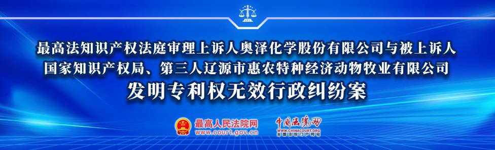 时 间:2020年4月23日上午9:00 案 号:(2020)最高法知行终1号 合议庭组成:焦彦、李自柱、魏磊 案 由:发明专利权无效行政纠纷 上 诉 人(原审原告):奥泽化学股份有限公司 被上诉人(原审被告):国家知识产权局 第三人:辽源市惠农特种经济动物牧业有限公司