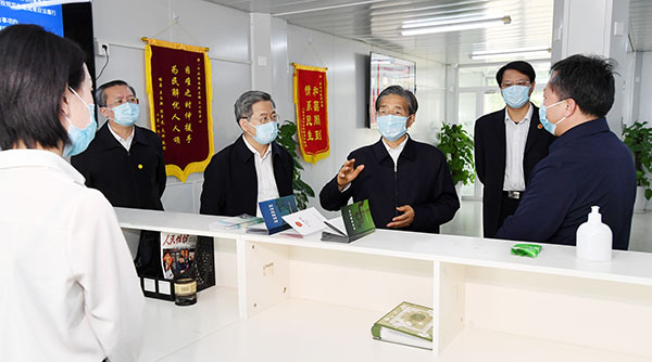 4月28日至29日,中共中央政治局委员、中央政法委书记、中央依法治国办主任郭声琨在河北调研。图为郭声琨来到雄安新区群众工作中心了解矛盾纠纷调处化解等情况。 摄影 郝帆