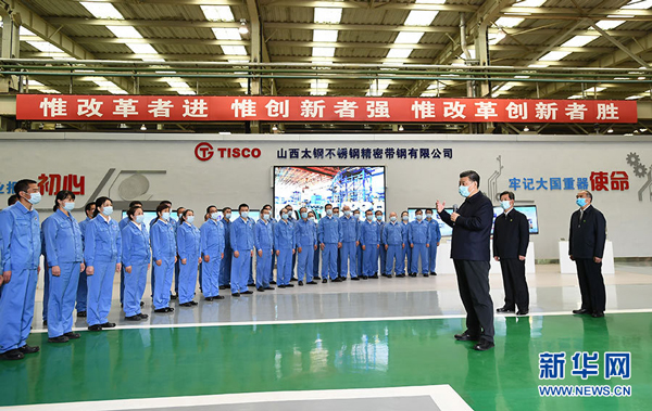 随后,习近平前往太钢不锈钢精密带钢有限公司考察调研。这家企业依托先进生产工艺,以其“超薄、超平、超硬”的产品特性取得快速发展。习近平走进生产车间,察看企业转型升级产品展示,了解企业运行情况。在光亮机组前,习近平饶有兴致地观看了厚度仅有0.02毫米的不锈钢箔材“手撕钢”产品。习近平指出,产品和技术是企业安身立命之本。希望企业在科技创新上再接再厉、勇攀高峰,在支撑先进制造业发展方面迈出新的更大步伐。现在,全国防疫工作进入新阶段,既取得重大战略成果,同时面临外防输入、内防反弹的压力,希望企业不要麻痹松懈,继续抓紧抓实抓细各项防控措施,更好复工复产,做到安全生产、健康生产,把失去的时间抢回来,努力完成今年的目标任务。