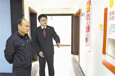 图为温菲(左)在萍乡中院调研。 陶覃婧 摄