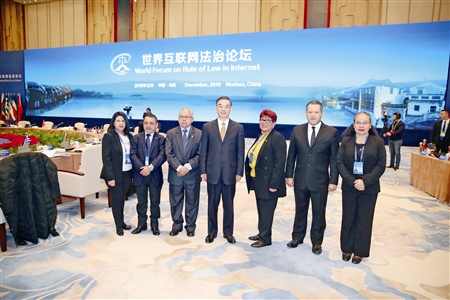 2019年12月5日,世界互联网法治论坛在中国浙江乌镇举行。论坛由中华人民共和国最高人民法院举办。来自世界25个国家的81名代表参加会议。中华人民共和国首席大法官、最高人民法院院长周强出席开幕式并致辞。周强表示,各国应加强司法交流合作,共同提升互联网法治建设水平,促进网络空间法治,为完善全球互联网治理体系,推动构建网络空间命运共同体作出积极贡献。