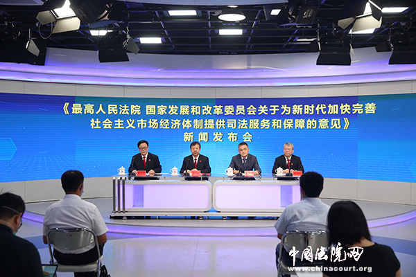 发布内容:发布《最高人民法院 国家发展和改革委员会关于为新时代加快完善社会主义市场经济体制提供司法服务和保障的意见》并回答记者提问。