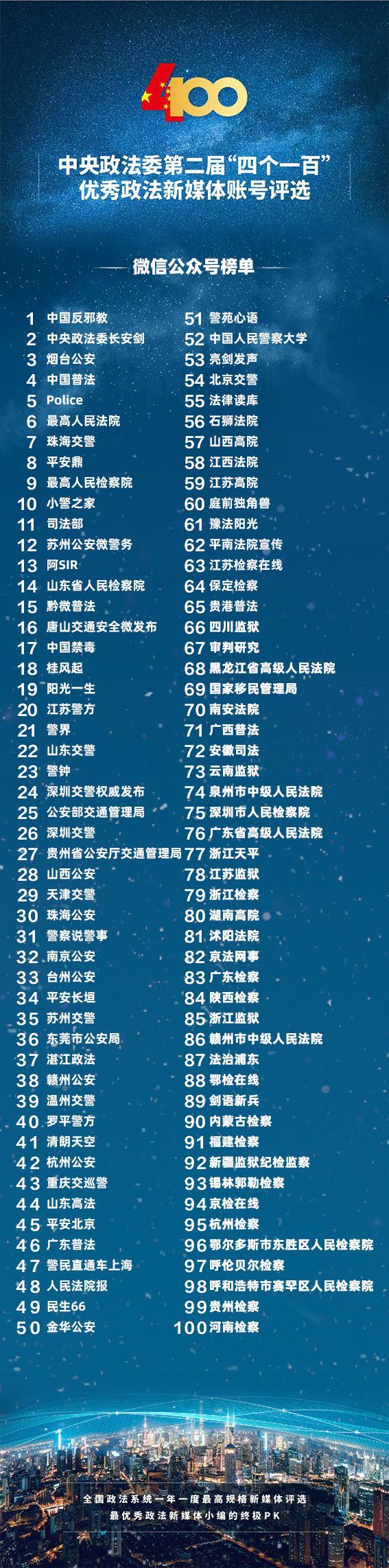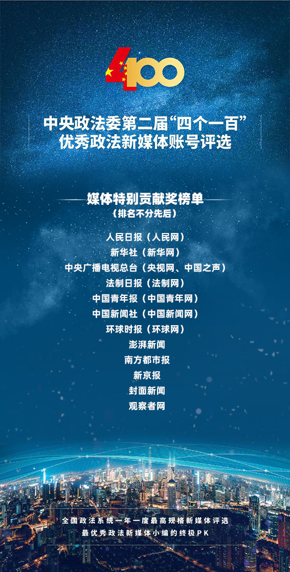 中央政法委发布“四个一百”优秀政法新媒体榜单