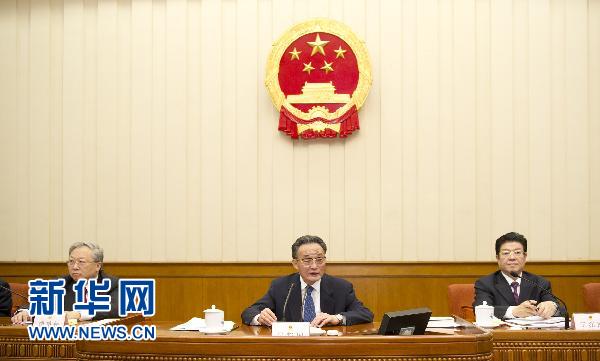 4月22日,十一届全国人大常委会第二十次会议在北京人民大会堂闭幕。吴邦国委员长主持会议并发表重要讲话。 新华社记者 黄敬文 摄